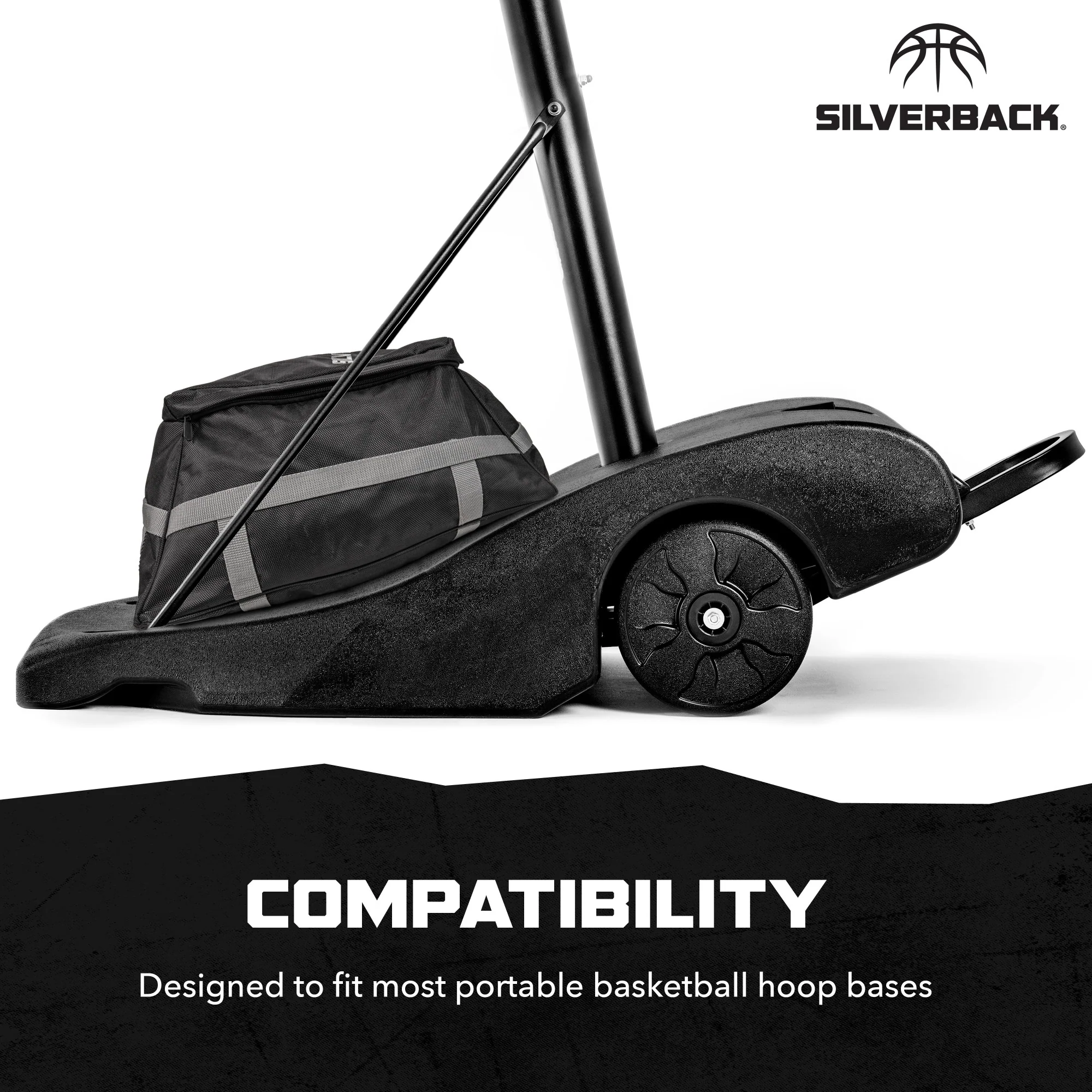 Add weight on top of your portable basketball hoop base with our all-new Silverback Universal Weight. The additional weight will increase stability and is designed to fit on top of most portable hoop bases. The weight holds up to 100 lbs. of sand and removes the use for any ugly, eyesore alternative objects. Made from durable materials, the universal weight will last years and withstands severe weather conditions. This listing only includes the Silverback portable weight bag and does not include a portable basketball hoop, basketball goal base, or sand.